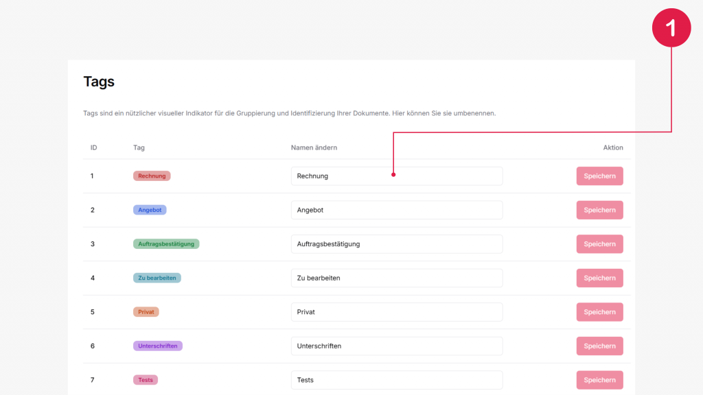 Sobald Sie die Seite Tags öffnen, erhalten Sie eine Übersicht über alle Tags, die von Ihnen oder Ihren Benutzern erstellt wurden.