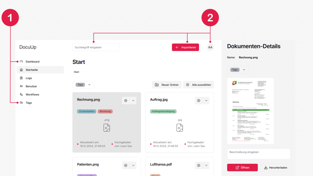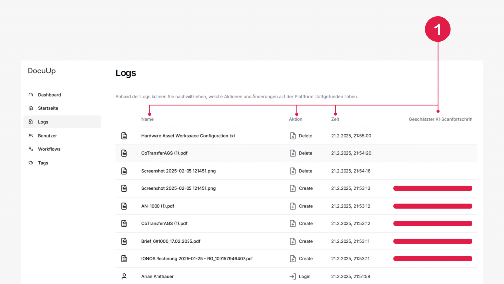 - KI-Scanfortschritt der hochgeladenen Dokumente